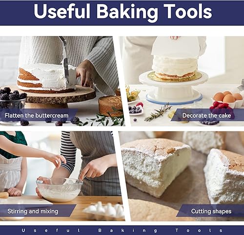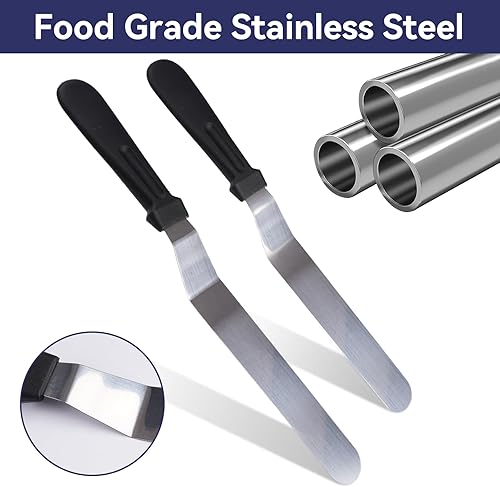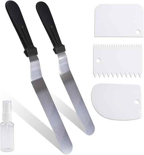 2 Spatules Coudées en Acier Inoxydable et 3 Spatules Pâtisserie en Plastique Alimentaire Différents Motifs Set Professionnel pour Glaçage, Lissage et Décoration de Gâteaux, Cupcakes et Pâtisseries