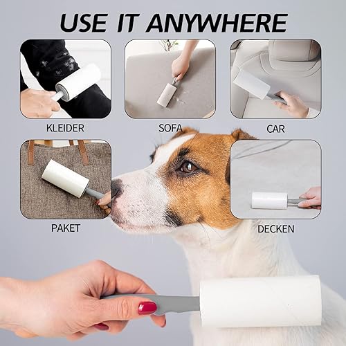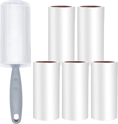 Puki Diary Rouleau Poils Animaux, 360 Feuill Rouleau Adhesif Vetement, Brosse Vetement Anti Poils, AdhéSif Puissant Brosse Adhesive (6 Rouleaux + 1 Brosse)