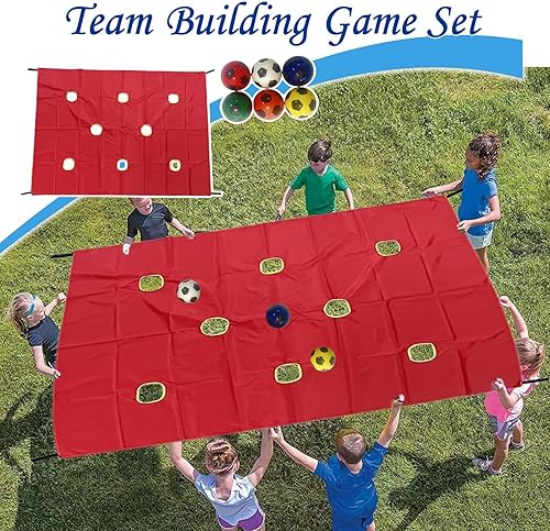 Jeu De Team Building avec Bâche À Trous - Jeux de Collaboration pour Apprentissage en Groupe,Défi Sportif pour Événements Scolaires, Parcs, Salle De Sport Et Jardin