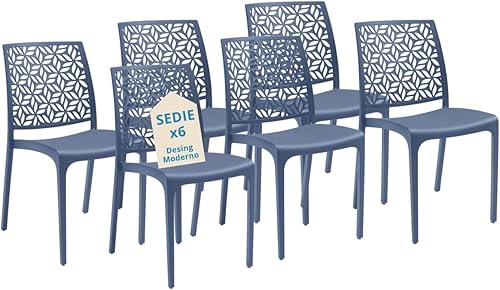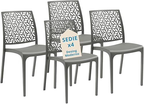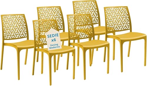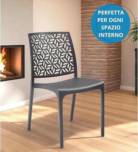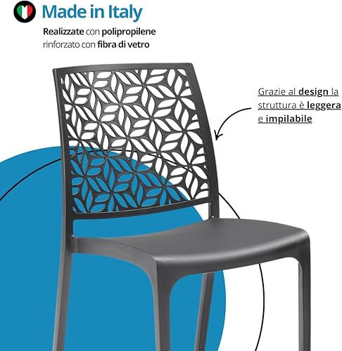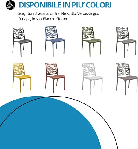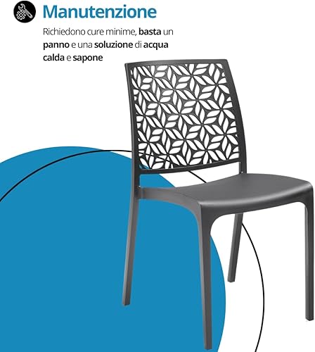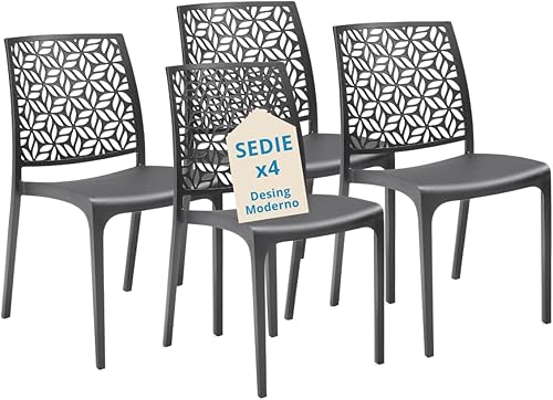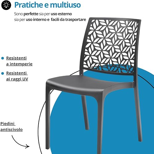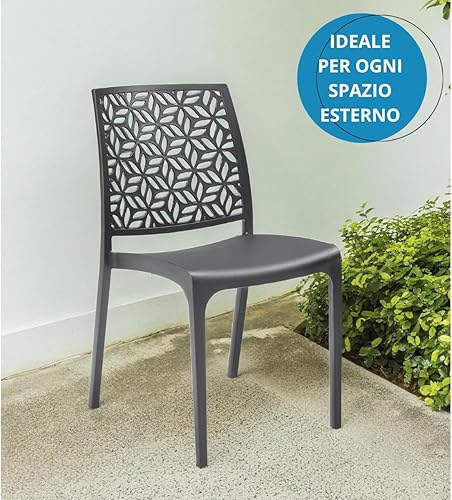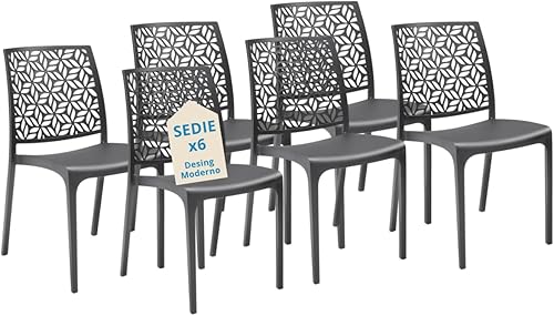 Tomaino - Chaise de cuisine en plastique - Ensemble de 6 chaises empilables en plastique avec accoudoirs pour l'extérieur et l'intérieur - Chaises pour jardin, salon, balcon ou bar (4, noir)