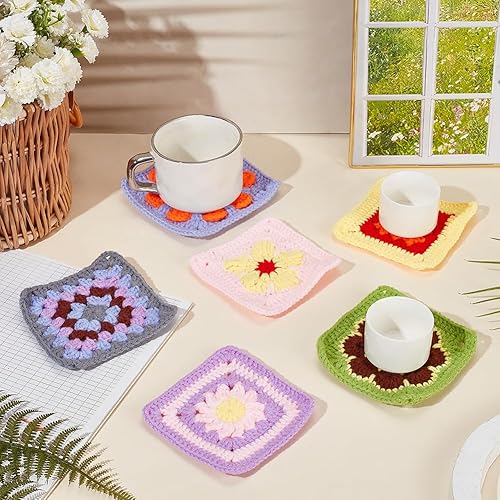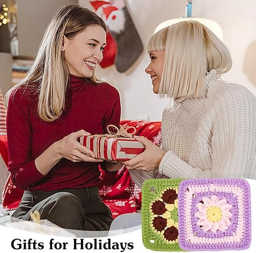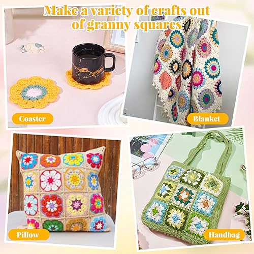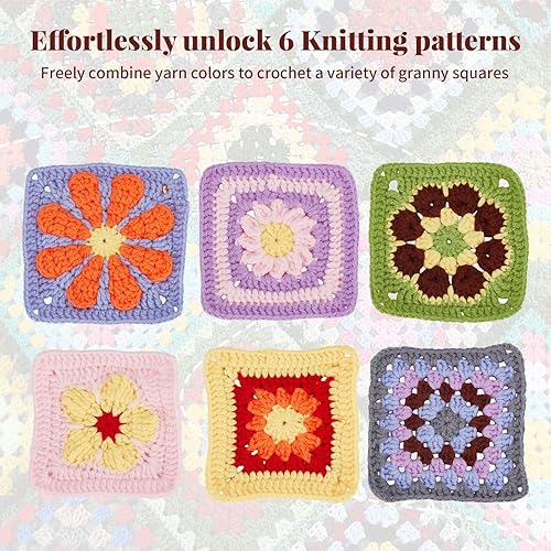ORIGACH Kit de crochet Daisy Granny Square pour débutants et adultes, fait à la main, kit complet avec tapis de blocage du crochet en bois, tutoriels vidéo étape par étape