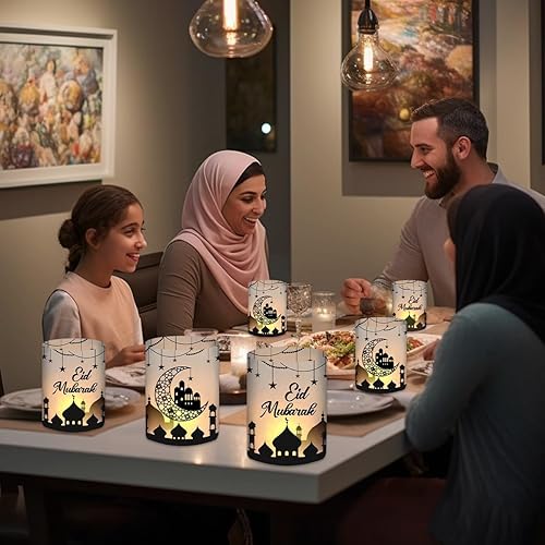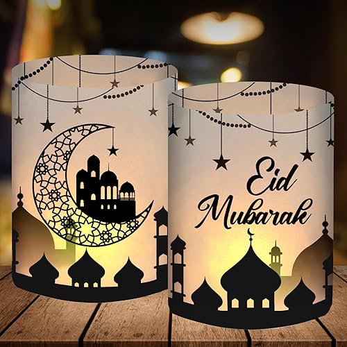 Lot de 12 photophores décoratifs de Table pour Ramadan 2025, Hajj Mubarak, Decoration Aid Moubarak Islam Bayram, Accessoires pour Enfants, Ramazan Süsleri, pour Bougies Chauffe-Plat ou Bougies
