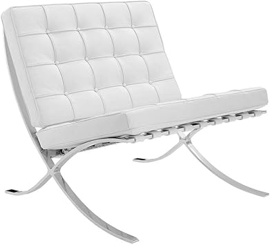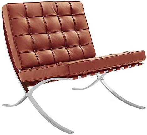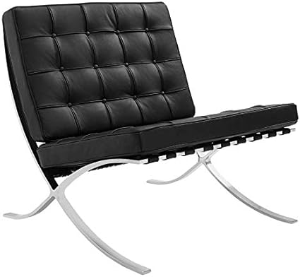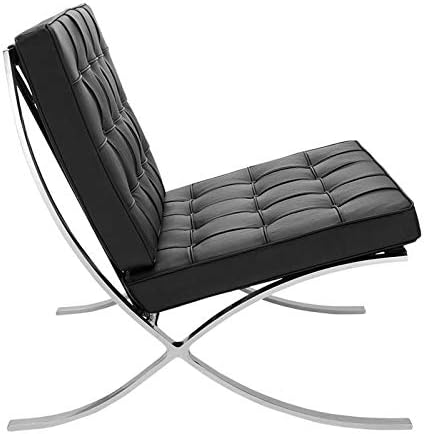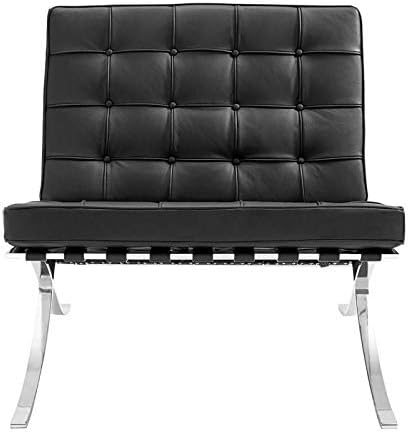 Furnwise Fauteuil de salon moderne en cuir avec cadre en acier inoxydable poli (noir)