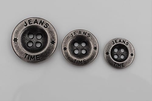 Lot de 5 boutons en métal argenté - Pour jeans - 4 trous - Fabriqués en Allemagne - 22 mm