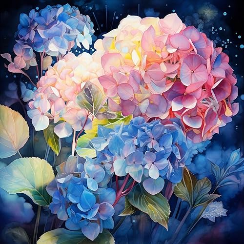 ECUCU DIY 5D Diamant Peinture Kits, Fleurs d'hortensia colorées Bricolage Diamond Pasted Painting Point de Croix Peinture Strass Broderie Craft pour Home Décoration Murale