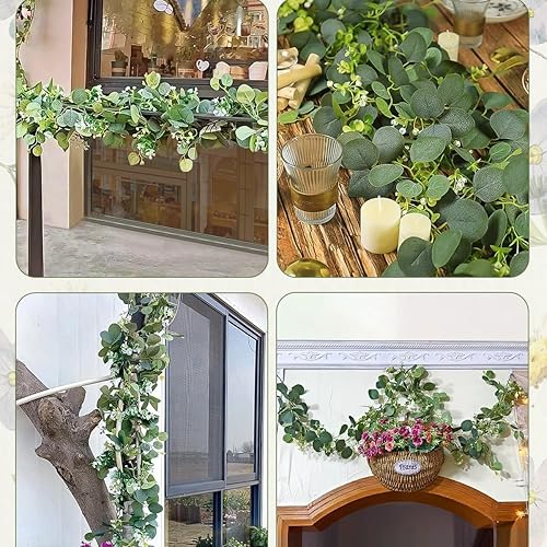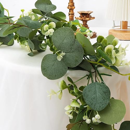 Guirlande d'eucalyptus artificielle, feuilles d'eucalyptus, vignes de verdure artificielle, chemin de table pour table, maison, mariage, décoration intérieure et extérieure
