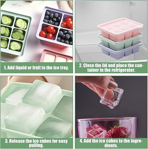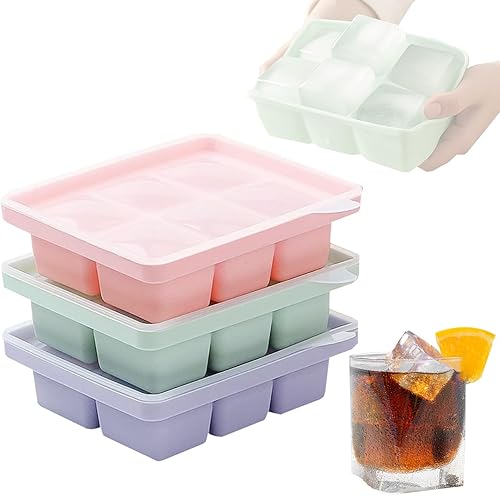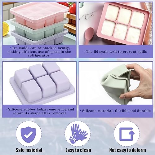 Fsaklaskdy 3 Pièces Bac a Glacons avec Couvercle Bebe, Moule Glaçons en Silicone Sans BPA, Empilable Glaçons Plaque Ice Cube Tray, Bacs Ice Faciles à Retirer, Glçons Carrés 3,5 cm pour Cocktails, Vin