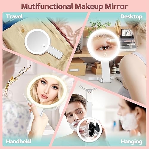 B Beauty Planet Miroir grossissant avec lumière, Miroir grossissant Double Face 30X/1X, Miroir de Maquillage de Voyage avec 3 lumières de Couleur, Miroir de Maquillage Pliable avec Pince à épiler