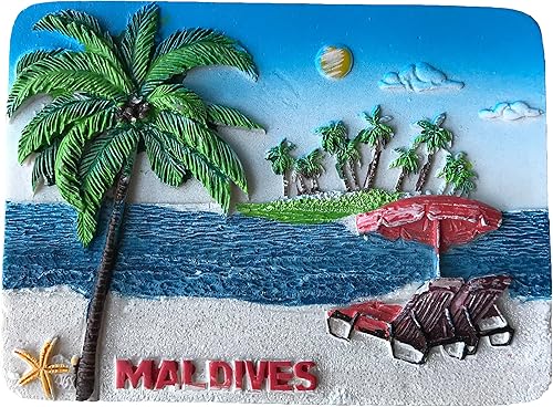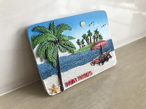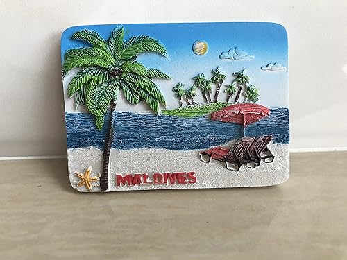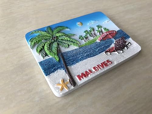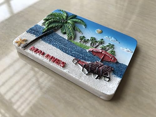 Aimant de réfrigérateur 3D Maldives Souvenirs touristiques Autocollant pour réfrigérateur Bord de mer Maldives Décoration de maison et de cuisine