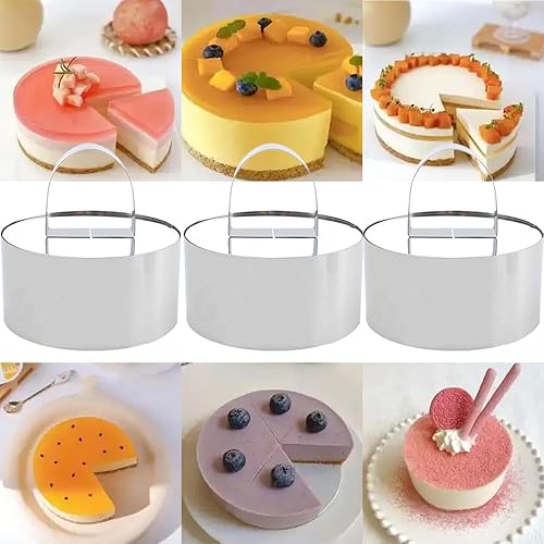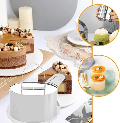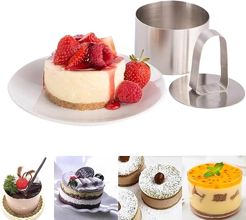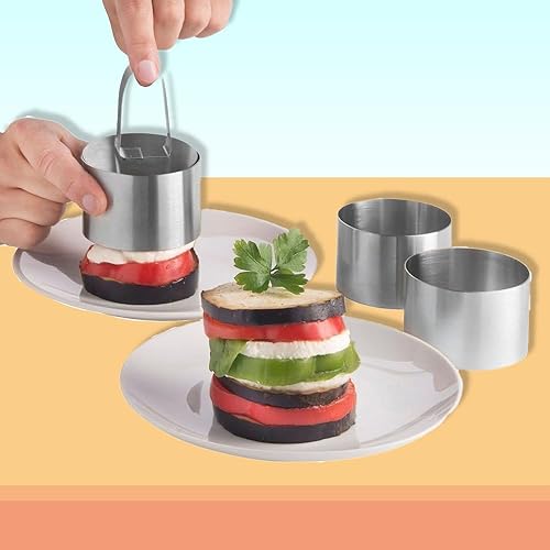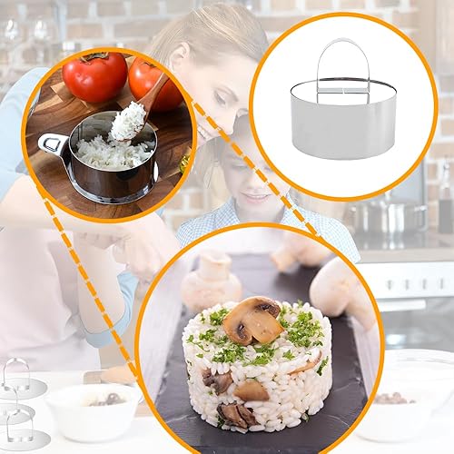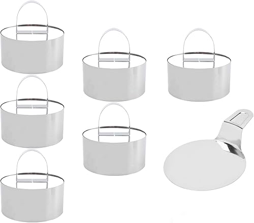 Mousse Anneaux en Acier Inoxydable,6 Pièces Ronds Emporte Piece Patisserie avec 6 Poussoirs et Une Spatule Moulle a Tartelette Individuelle pour Desserts Pâtisseries Mousses Gâteaux Hamburger