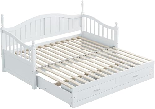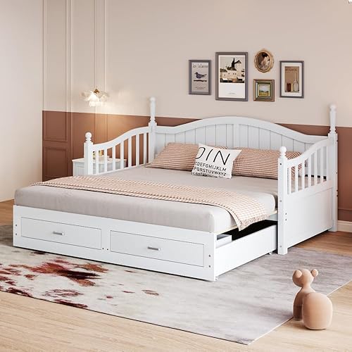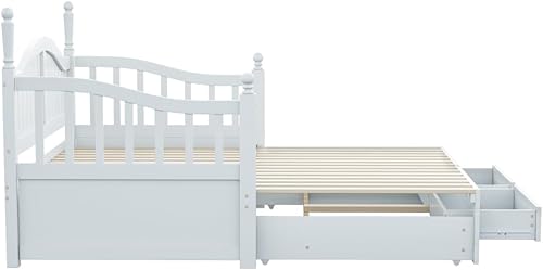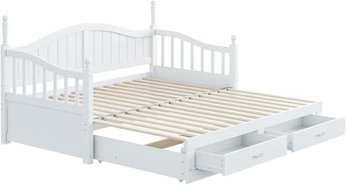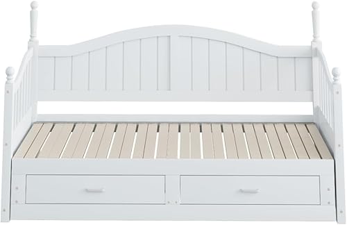 Zubaliya Canapé lit 2 Places Convertible avec gigogne 90x190,avec tiroirs et sommier à Lattes,Cadre de lit canape 180x190,en Bois Massif avec Dossier et accoudoirs incurvés(sans Matelas) (White)