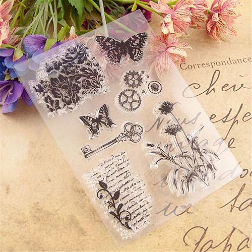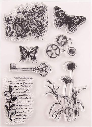 Arrietty Tampons transparents en forme de pissenlit avec motif de clé et papillon pour la fabrication de cartes, la décoration et le scrapbooking