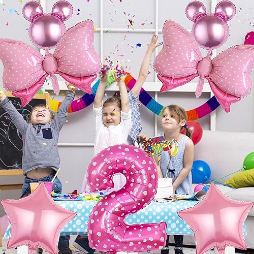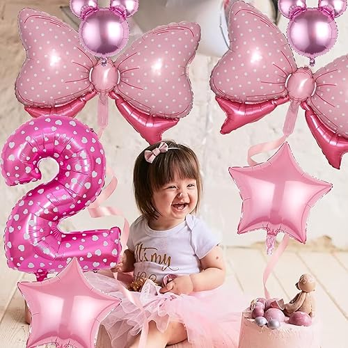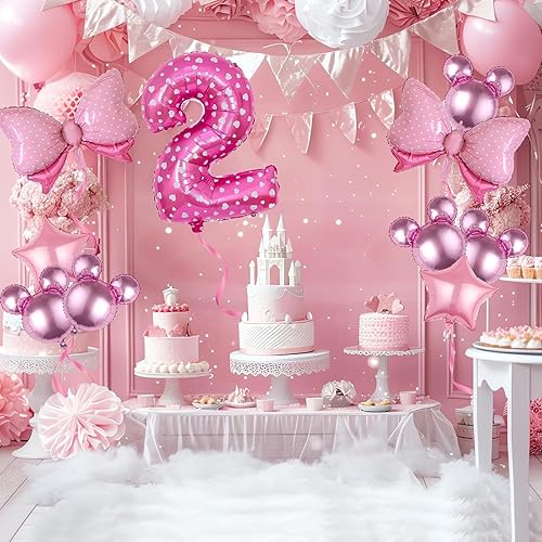 DazzJoy Minnie Mouse Décoration d'anniversaire 2 ans Fille Ballon Souris Ballon Décoration 2ème Anniversaire Fille Ballons Anniversaire 2 ans Fille 81 cm Ballons Rose Chiffres 2