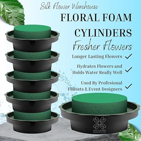 Silk Flower Warehouse Lot de 20 cylindres en mousse humide avec plateaux – Briques en mousse pour compositions florales pour mariage, fête, centres de table et arrangements funéraires – Fournitures de