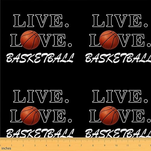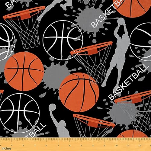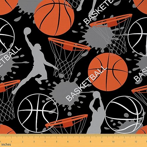 Basketball Tissus au Metre, basketball thème Tissu 92x150cm Chaise Canapé, boule Sport jeu Splash décoration imperméable Tissu, Noir orange gris