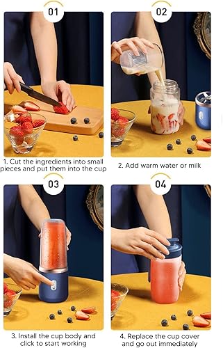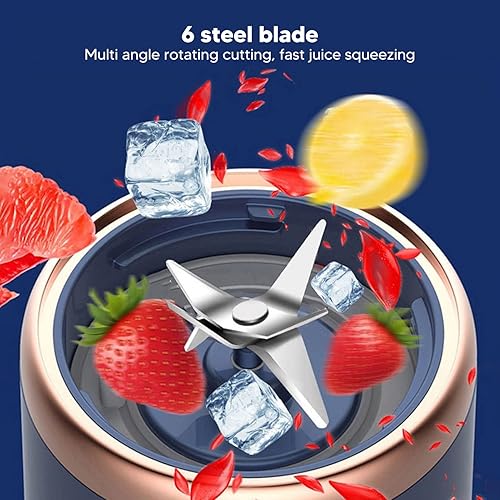 Mini Mixeur Portable avec 6 Lames et Couvercle, Taille Personnelle de 300 Ml pour Shakes et Smoothies, Presse-agrumes à Chargement USB Haute Vitesse pour la Maison, les Voyages, les Pique-niques, les