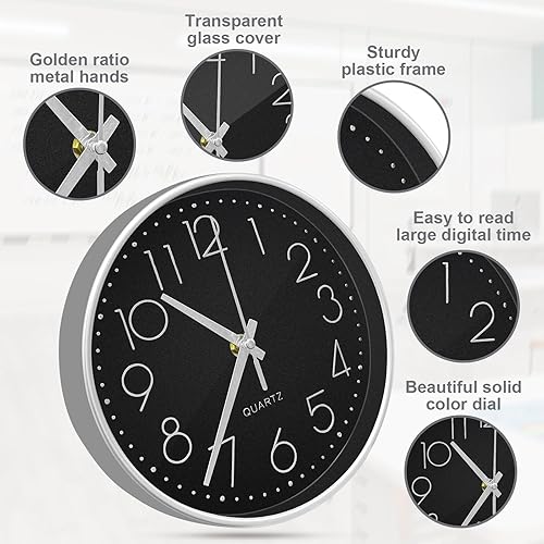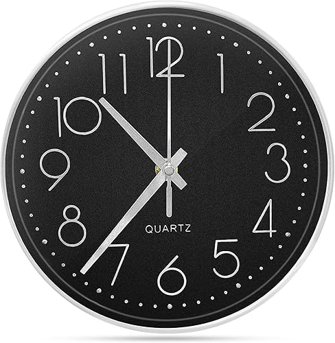 Xpieoyrm 20CM Pendules Murales, Silencieuse Moderne Pendule Murale Noir, 8 Pouces Mouvement à Quartz Silencieux, Horloge Murale à Piles, sans Tic-tac Déco pour Salon Chambre Bureau Cuisine