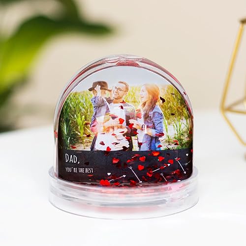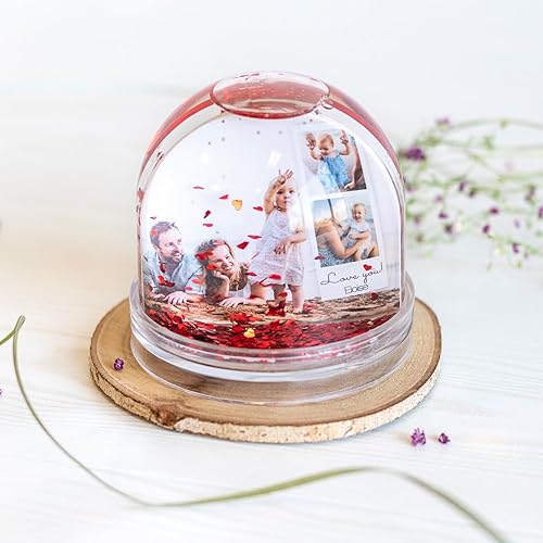 Smartphoto Boule à Neige personnalisée - avec de Paillettes de cœurs Brillants - Cadeaux pour la fête des pères, des mères, la Saint-Valentin, Noël et Les Anniversaires - 9,1x7.5cm