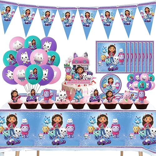 Ensemble de vaisselle de fête Ferbncvasg, vaisselle pour fête d'anniversaire, décoration d'anniversaire fille Lilo Stitch violet avec assiettes, bannière, ballons, cartes gâteau, mouchoirs, nappe
