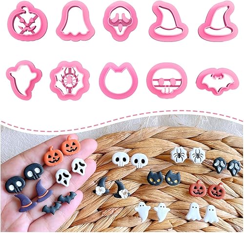 KEOKER Emporte-Pièces en Argile pour Halloween - 10 Formes pour la Fabrication de Boucles d'Oreilles, Emporte-Pièces en Argile Polymère (Boucles d'Oreilles 1)