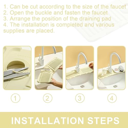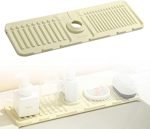 TIANLIN Blanc Tapis Evier Cuisine, Pliable Protege Evier, Tapis D'égouttage en Silicone, Adapté aux Comptoirs de Cuisine et de Salle de Bain Imperméables et Résistants aux éclaboussures
