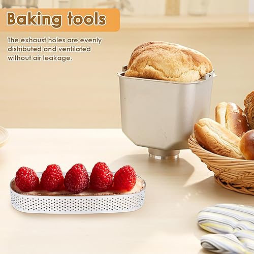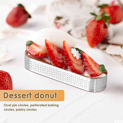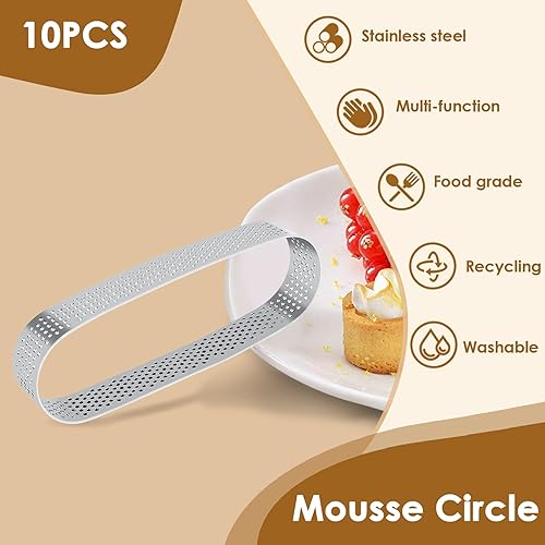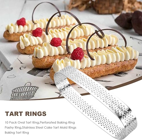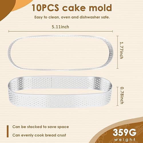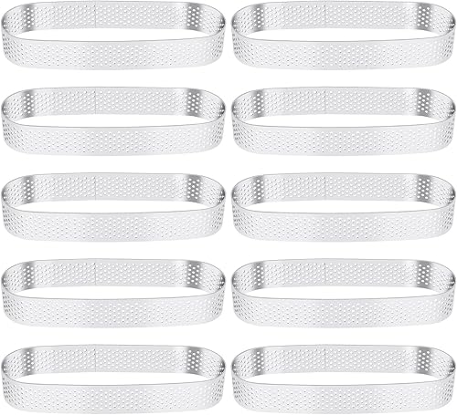 Iunipusy Lot de 10 moules à dessert en acier inoxydable ovales avec perforation, idéal pour mousse, gâteau et quiche, 13 x 4 x 2 cm