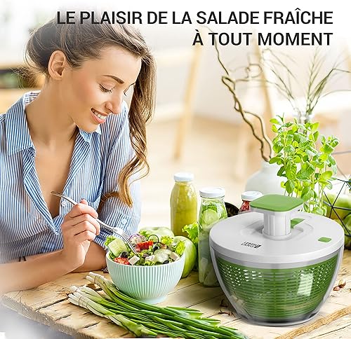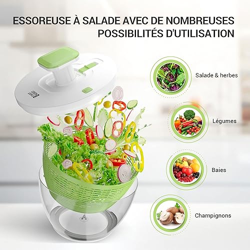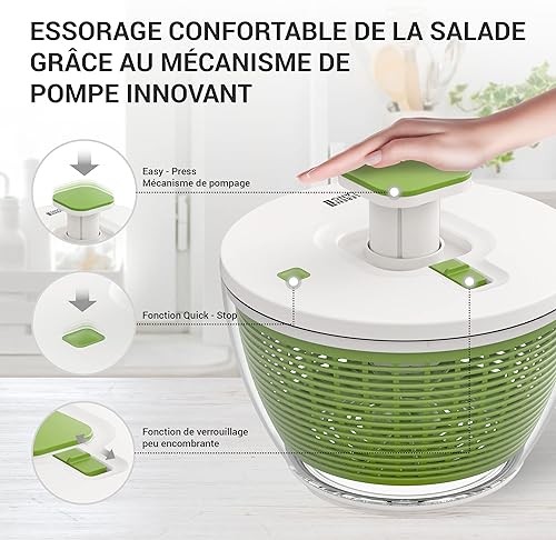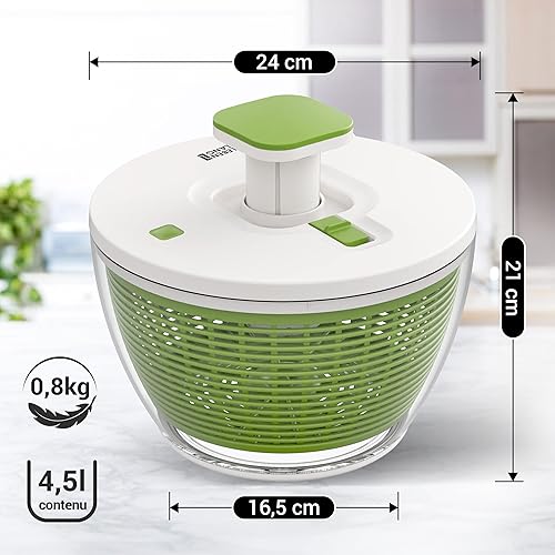 LEBENLANG Essoreuse à Salade Grande 4,5l - Panier a Salade essoreuse sans bpa avec mécanisme de Pression innovant |Seau essoreur avec Couvercle Essoreuse à Champignons egouttoir Salade Salad Spinner