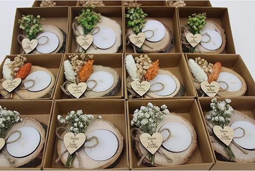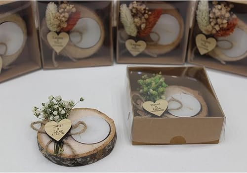 mxn Cadeau Mariage Invité Bougie Personnalisée,Porte-Bougies Chauffe-Plat en Bois Personnalisé,Personnalisée Gravée Prénom étiquette,Bougie Personnalisée,Cadeaux De Fête De Mariage pour Invités