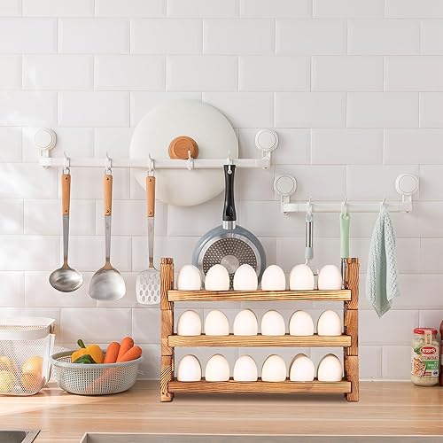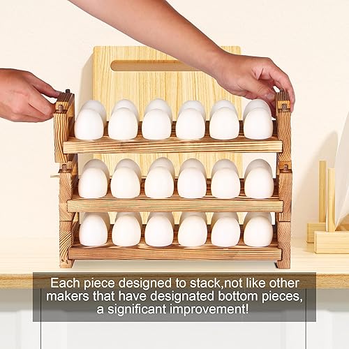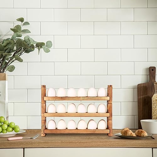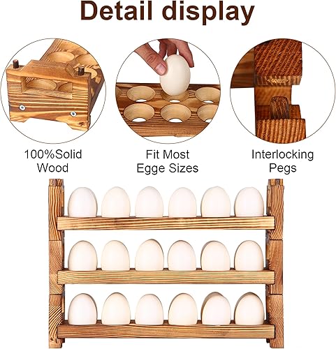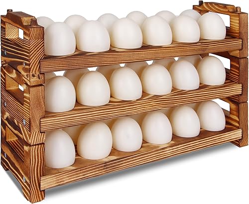 CVHOMEDECO. Lot de 3 porte-œufs en bois pour recueillir des œufs frais, empilables avec 36 œufs, organiseur de cuisine pour la maison