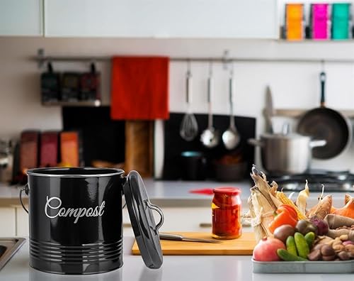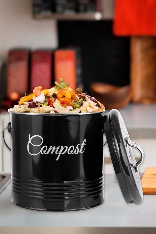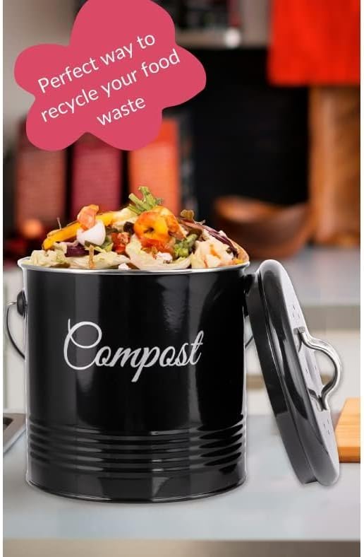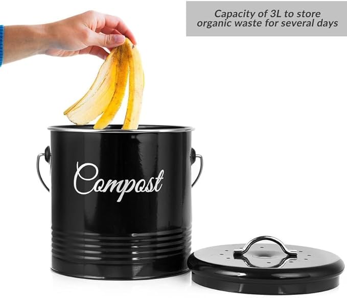 Innoteck Essentials Seau à compost – Seau de compostage de cuisine de 3 litres – Filtres à charbon et couvercle pour recyclage des déchets alimentaires biologiques d'intérieur – Poubelle de compost de