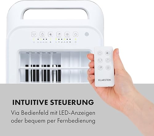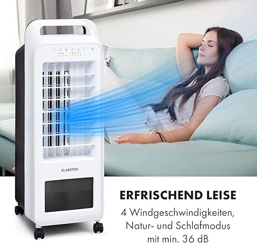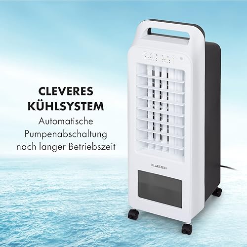 Klarstein Cooler Rush 3 en 1 Refroidisseur d'air Ventilateur Humidificateur 45 W 132 m³/h 3 niveaux de vent 3 modes : normal/nature/nuit, panneau de contrôle tactile, minuteur, réservoir 5,5 l, blanc