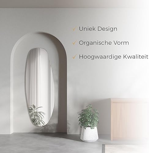 Vidi Visione Cristallina Miroir Mural Asymétrique | Miroir Décoratif Ovale 150 x 55 cm | Design Asymétrique à Suspendre | Miroir Décoratif Moderne