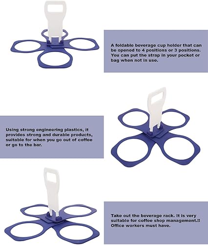 1 Pièce Porte-tasses pliable pour café, boissons non alcoolisées, tasses à bière - robuste, réutilisable, format de poche, festivals et fans de sport, 4 tasses (Bleu)