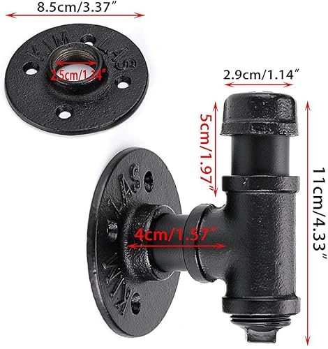 Crochet porte-serviettes robuste noir mat pour salle de bain, vêtements, armoire, placard, éponges, crochet mural rond en fer industriel, tuyau de fer industriel, tringle à vêtements
