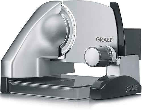 GRAEF Trancheuse SKS500 argent, lame ondulée inox Ø170 mm, épaisseur réglable, construction surélevée, MiniSlice, sécurité enfants, utilisation à une main, idéale cuisine domestique