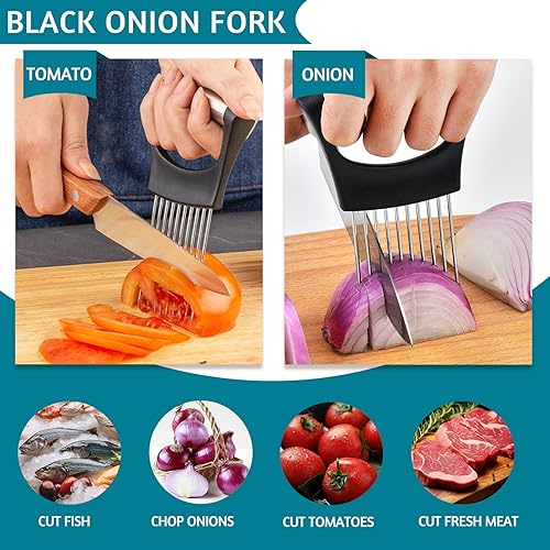2 PièCes Titulaire Trancheuse en Acier Inoxydable, 2024 Support à Oignons Amélioré pour Trancher, Alimentaire Tranche Assistant Coupe-Citron Coupe-Pommes de Terre, Pour Viande, Oignons, Tomates