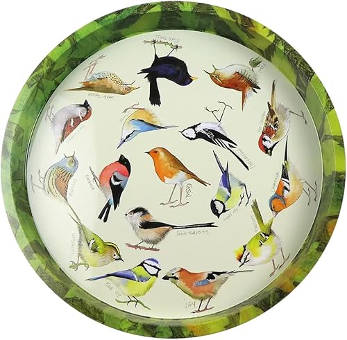 Plateau à thé/boissons rond coloré Motif oiseaux du jardin britannique 32 cm