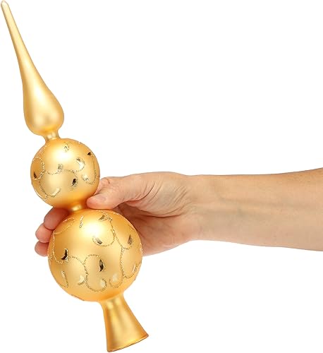 com-four® Christmas Tree Top Glossy - Sapin de Noël en Verre pour Noël - Sapin de Noël décoré pour Le Sapin de Noël (31cm - Boule Double Or Inca)