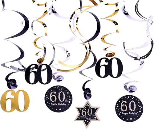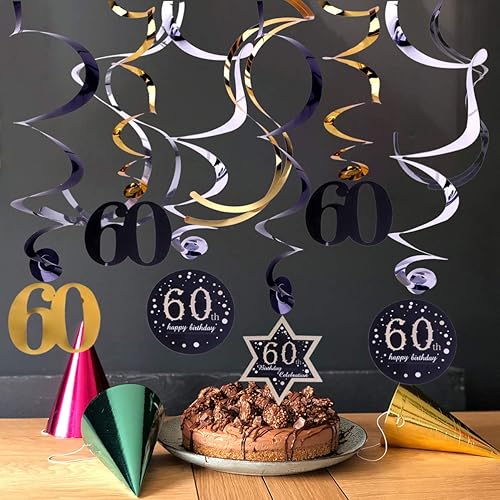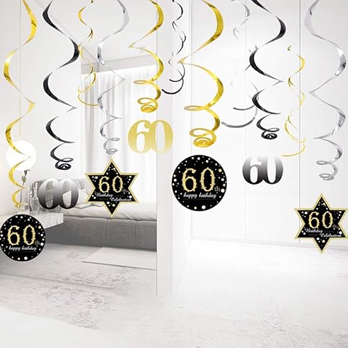 Amosfun DéCoration Anniversaire 60 Ans, Guirlandes Tourbillons Suspendus, Ornements Spirales Pvc, Multicolore, Pour FêTe, Plafond, Portes, FenêTres