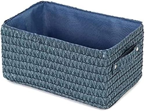 Compactor Panier de Rangement Rectangulaire avec Poignée Rétractable, Renforcé avec du Carton, Bleu avec Doublure Intérieure Assortie, Gamme Lilou, 23 x 15 x H.12 cm