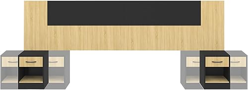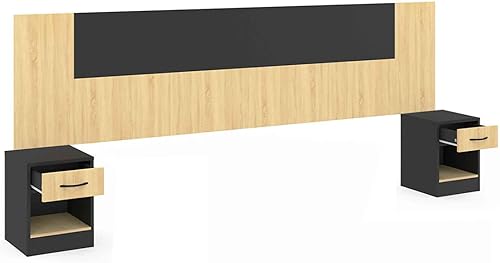 IDMarket - Tête de lit sur Pied avec chevets modulables SAPA pour lit 140, 160 ou 180 cm Bois et Noir