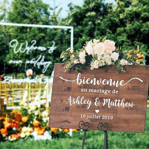 Conseil De Mariage Français Panneau ,De Réception De Bienvenue Autocollant Personnalisé Mariage Pour Verre,Nom Personnalisé Date Panneau De Mariage,Bienvenue Mariage Autocollant (Size : 33x57cm)