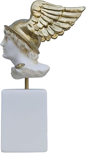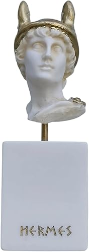 BEAUTIFUL GREEK STATUES Hermes Mercury God Zeus Son Statue romaine en albâtre Doré Buste 14 cm avec base