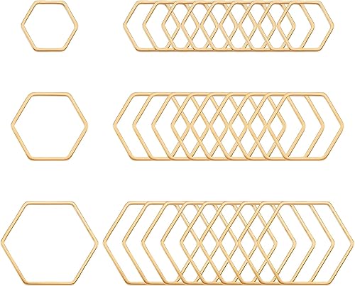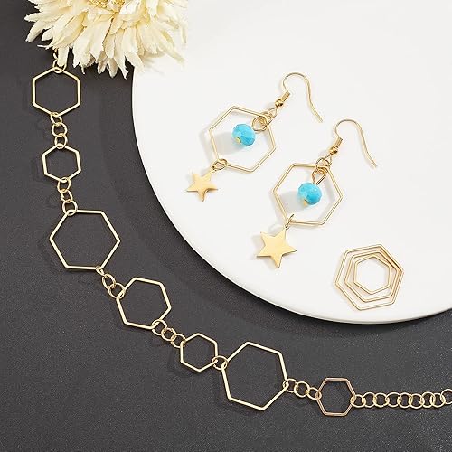 UNICRAFTALE 60pcs 3 tailles Anneaux de Liaison Acier Inoxydable Hexagone Doré Creux Lunette Ouverte Connecteur Pendentif Cadre Creux Anneaux pour Bijoux Fabrication de Boucles D'Oreilles Collier