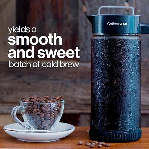 Machine à café froid Coffee Panda - 1,3 l - Verre robuste, facile à nettoyer - Filtre réutilisable en maille - Base antidérapante - Machine pour café glacé