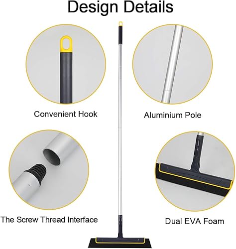 Yocada Balai à raclette de Sol Parfait pour Douche Salle de Bain Cuisine Maison Nettoyage en Mousse d’Eau Longue poignée Amovible réglable 51in