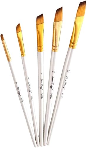 Lot de 5 pinceaux coudés plats pointus type angulaire pour peinture à l'huile acrylique aquarelle multi-usages pour le visage et le corps avec pointes en nylon très pratique et populaire