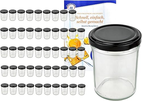 MamboCat Set 50 Pots Hauts Contenu 230 ML avec Couvercle Noir to 66, Livre de Recettes Inclus Diamant Gelierzauber Idéal comme Pot de Confiture ou de Conserve