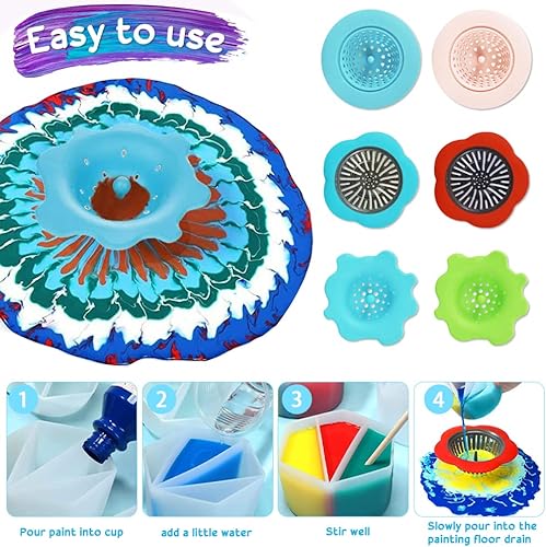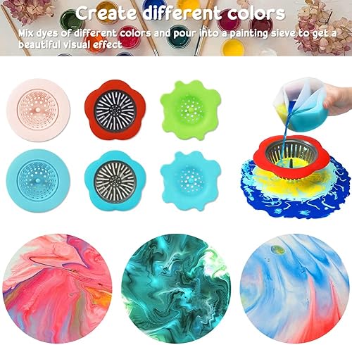 THATSRAD 6 PCS Tamis Verser Outils Silicone Crépines Coulée Acryliques en Silicone de Peinture Panier de vidange en Silicone Tasse Fendue en Silicone pour Peinture de Bricolage, Siphon de Sol de Évier