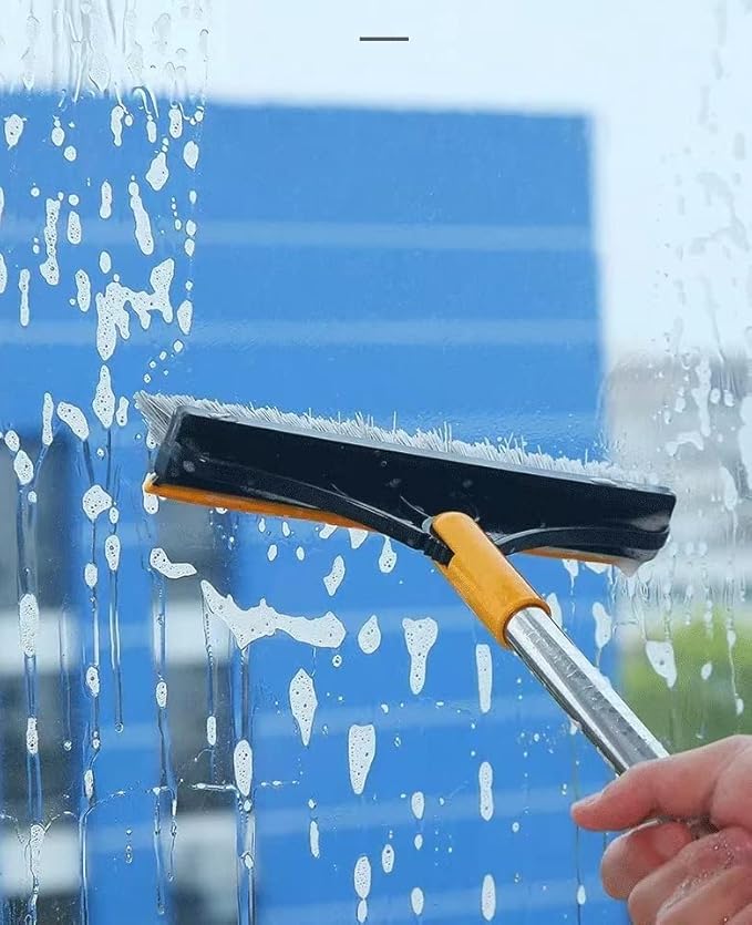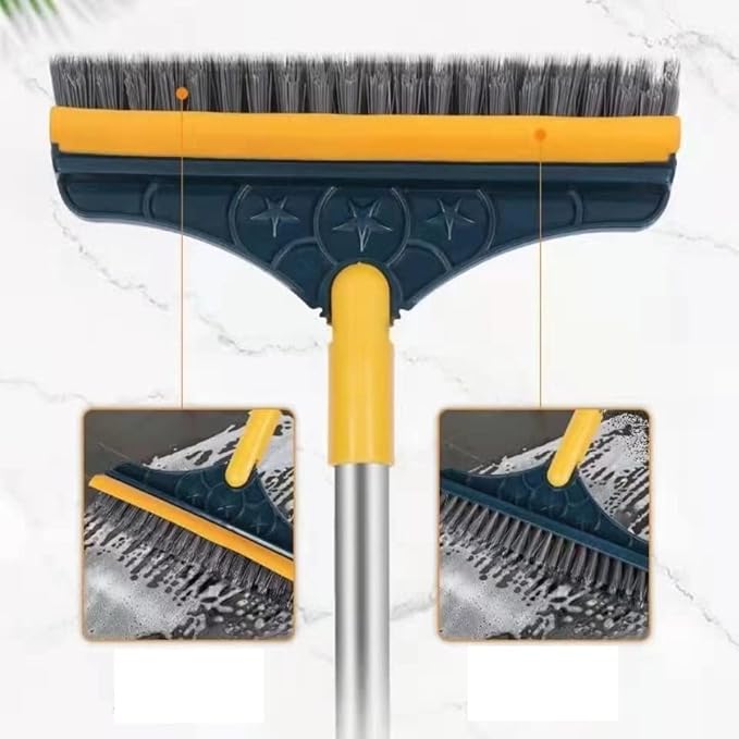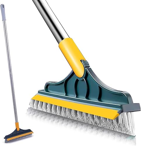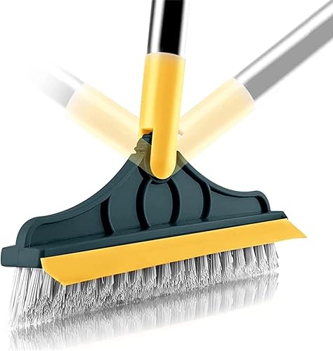 Brosse de nettoyage 2 en 1 rotative à 120° pour salle de bain, cuisine, suceur plat, tête de brosse amovible avec raclette à long manche